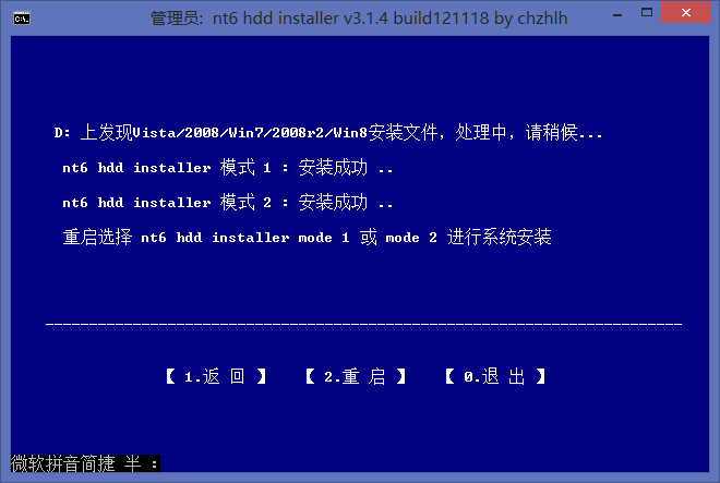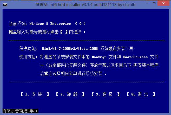 然后打开NT6 HDD Installer,按1或者直接点击安装。