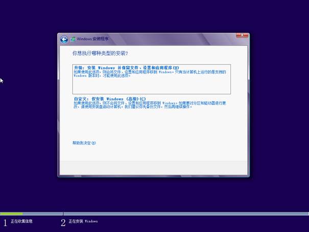 这里请选择 自定义: 仅安装Windows (高级) 。