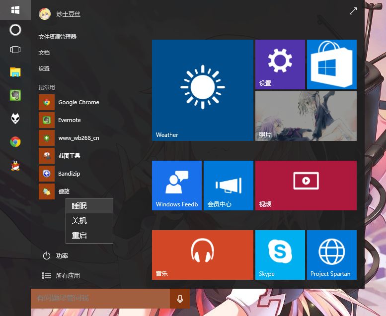 开始菜单小改,把电源选项隐藏到 “功率” 内,这里好像翻译错了,应该是电源(Power)。