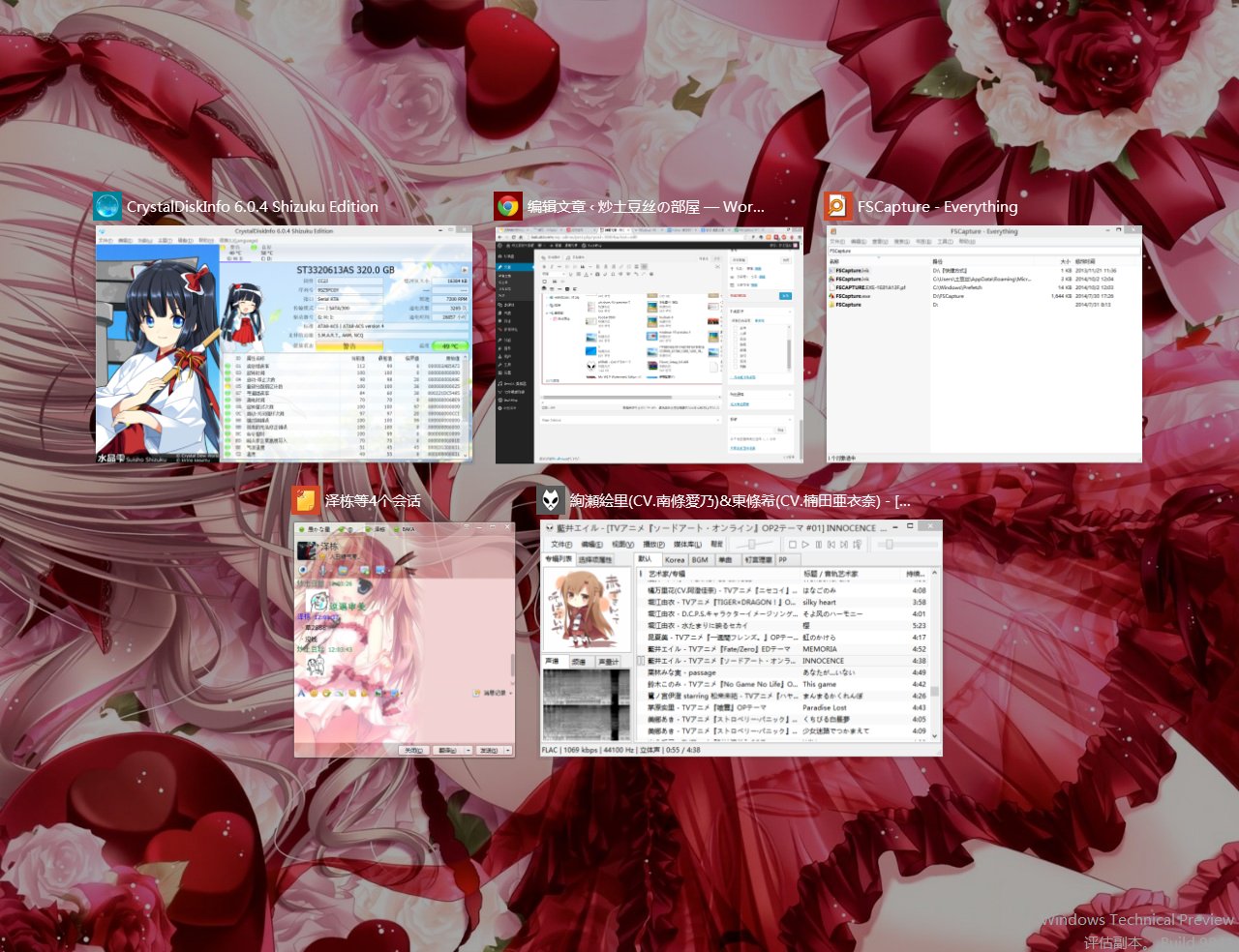最人性化 的多任务切换视图(Task View),当任务多时会变成多排显示,单个视图大小也是随动的。