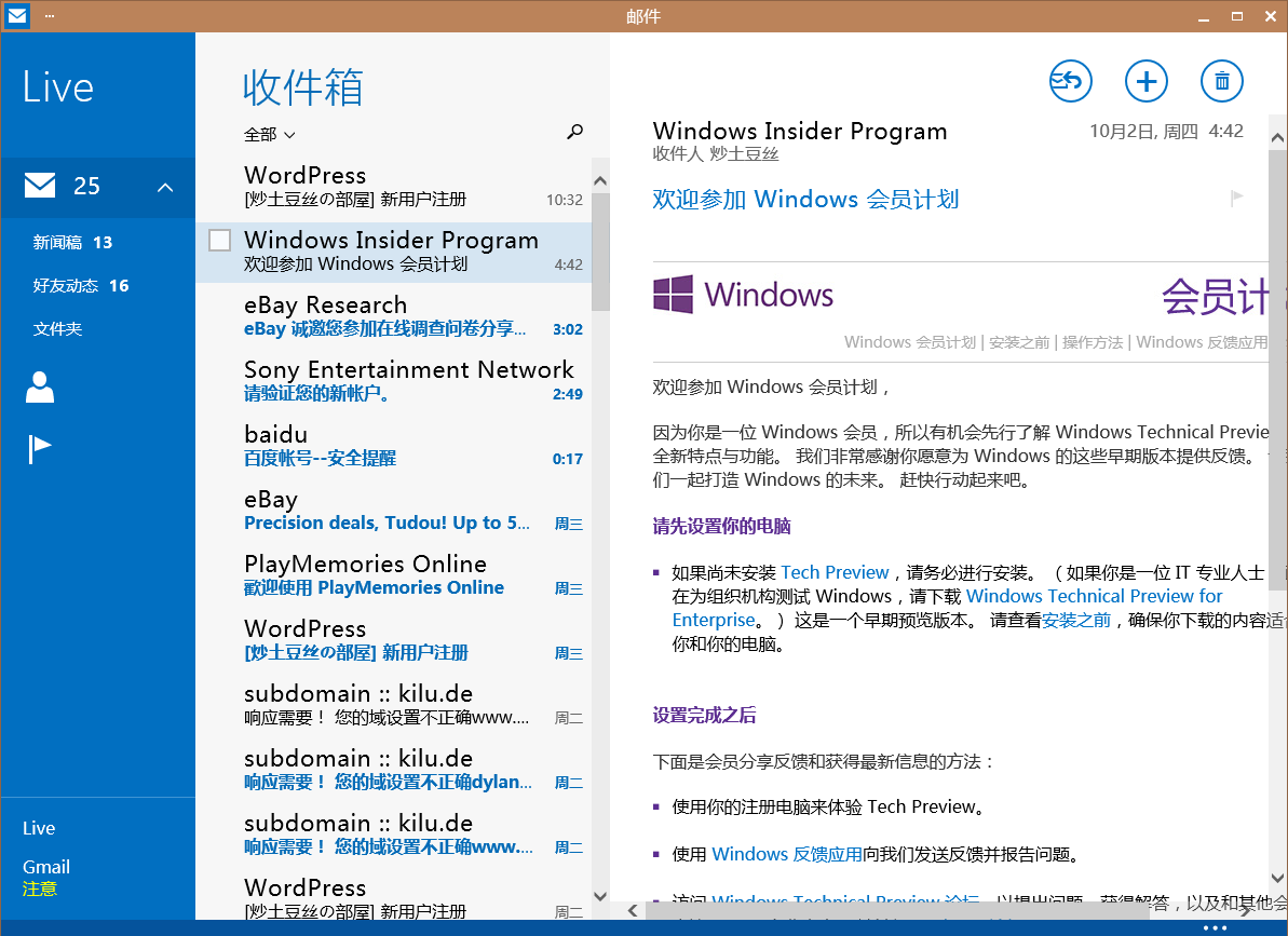 窗口化的Metro应用 – 邮件。