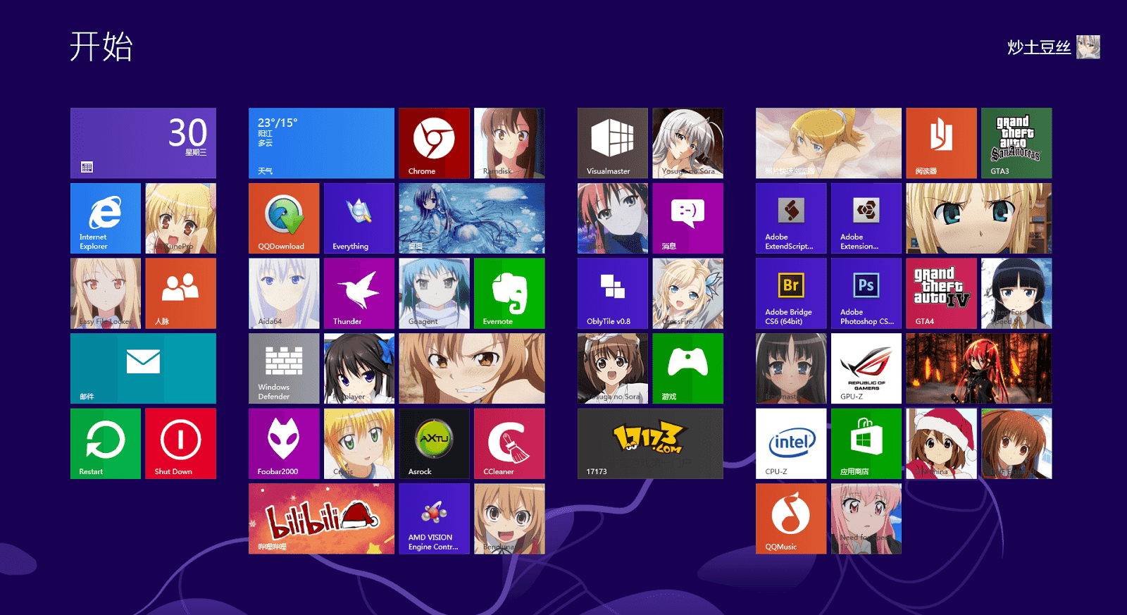 折腾 Windows 8 萌化成果!~。。。 用OblyTile修改Metro快捷方式的图标. 再用超级管理员权限进入C:Program FilesWindowsApps文件夹修改Metro应用的图标。 修改Metro应用图标的方法! OblyTile v0.8下载