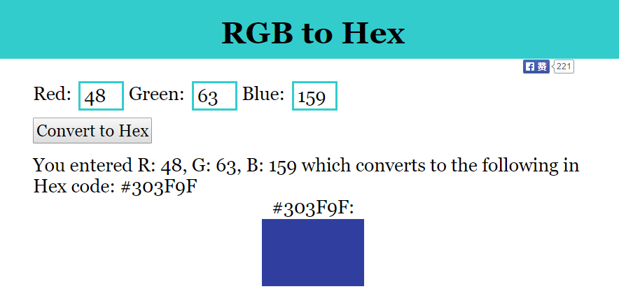 用在线工具把 RGB 代码转换成为 Hex 代码( #303F9F )。