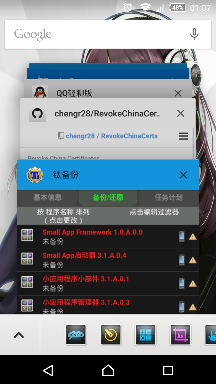 在Xperia Android固件中,最近任务界面(Recent Applications)底部、导航栏上方有一条小应用程序栏,这个小应用程序对很多人来说可能没什么用,在最近任务界面中的存在大大压缩了最近任务卡片的预览面积。