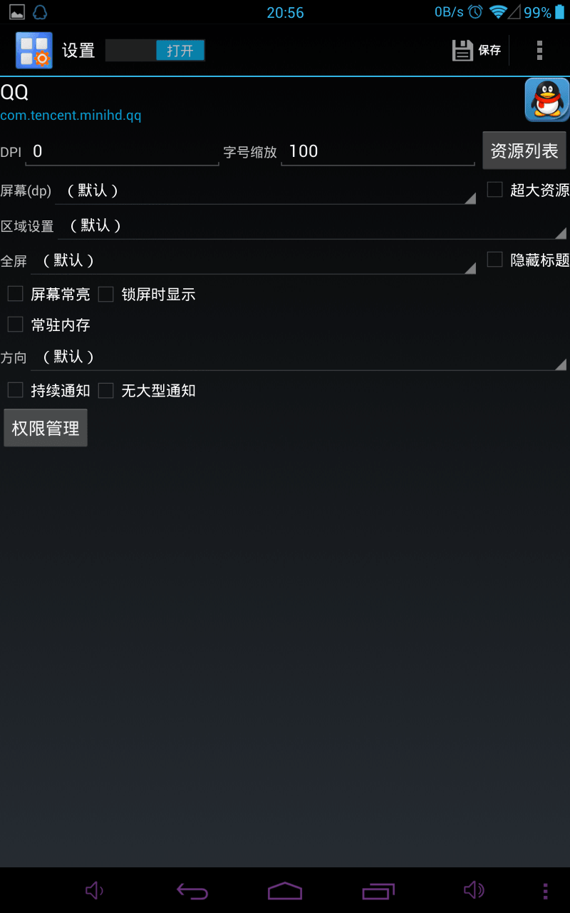 为每一个程序配置DPI、权限、语言、常驻内存等。
